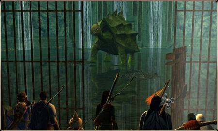 Eine Gruppe für die Versunkene Schatzkammer war bald gefunden und das Kapitel endete überraschend. So fanden wir ganz unten in den wassergefluteten Gängen den totgeglaubten Bróin wieder, jedoch bewacht von der Bestie, die ihn am Husten-Tor in die Tiefe gezogen hatte.